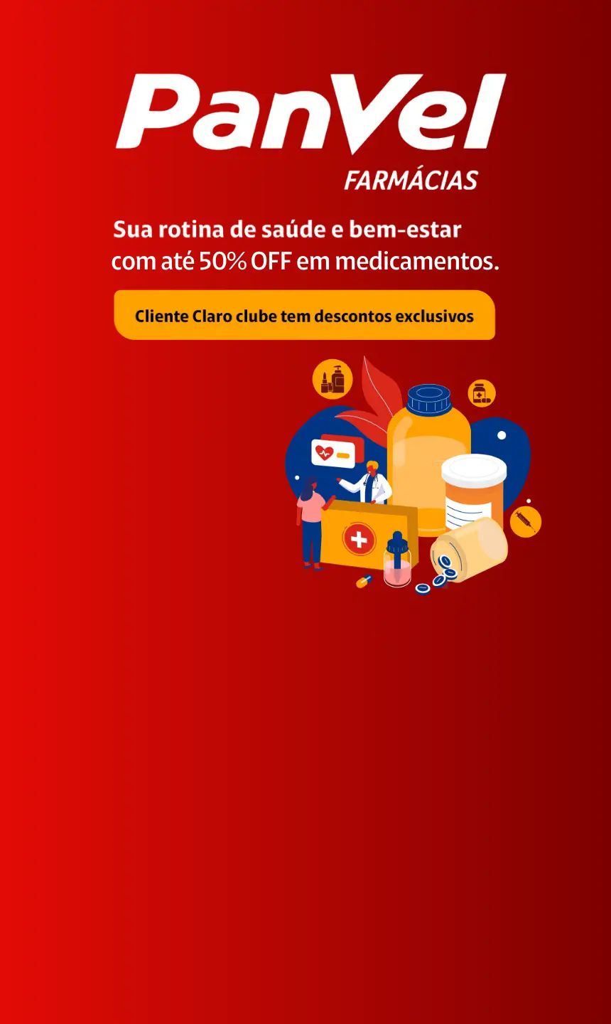 Clientes Claro clube aproveitam até 25% de desconto em medicamentos de referência e até 50% em genéricos. Além disso, confira descontos diários em produtos de higiene pessoal, perfumaria e beleza.