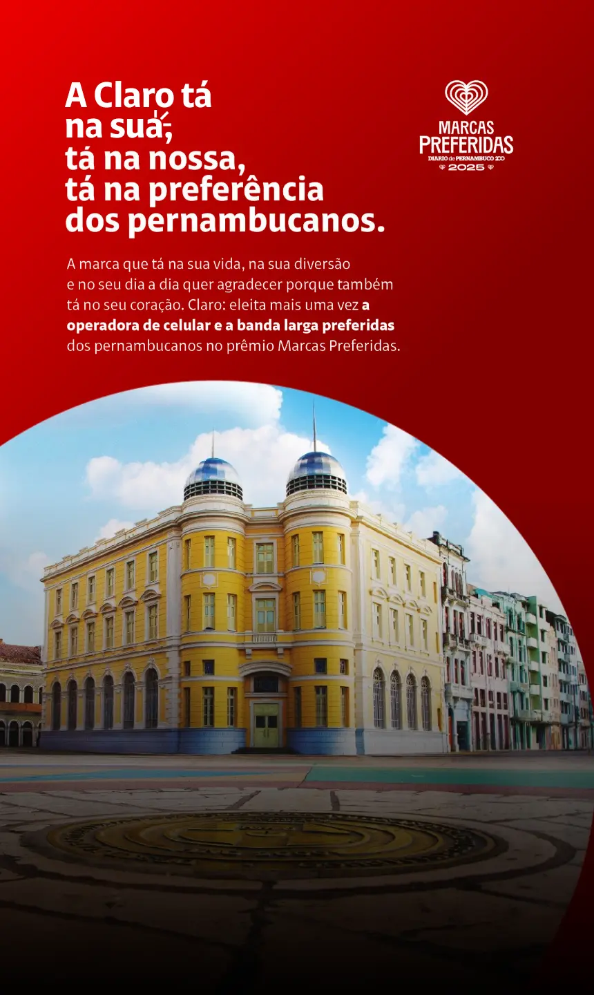 A Claro é vencedora das categorias internet Banda Larga* e Operadora de Celular* no prêmio Marcas Preferidas 2025, do Diário de Pernambuco.