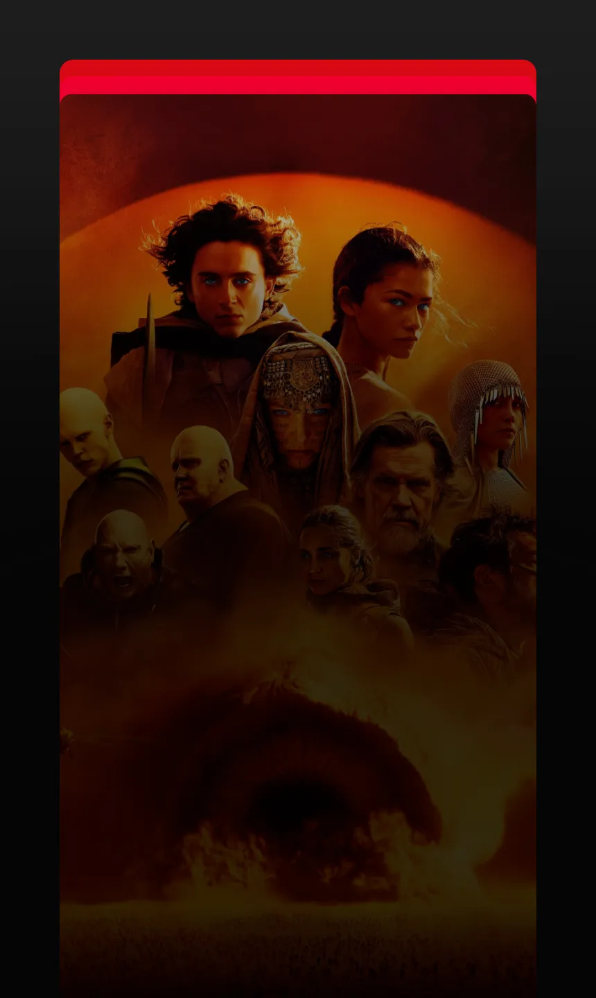 Você pode assistir ao filme Duna: Parte 2 na Claro tv+. A produção foi indicada ao Oscar 2025 em 5 categorias: Melhor Filme, Melhor Fotografia, Melhores Efeitos Visuais, Melhor Som e Melhor Design de Produção.
