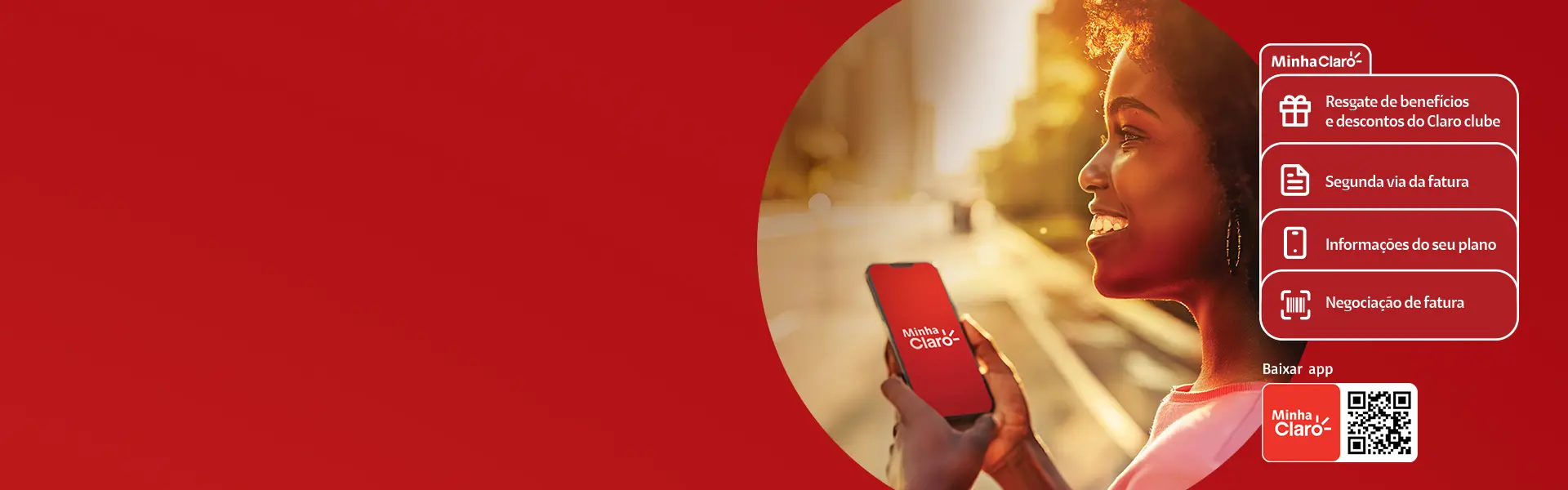 Agora você pode gerenciar todos os produtos e serviços da Claro em um só lugar. Baixe o app Minha Claro, faça seu autoatendimento e aproveite as ofertas e benefícios exclusivos do app.