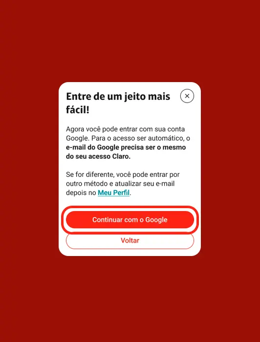 Acesse o Minha Claro de forma automática com a sua conta Google.