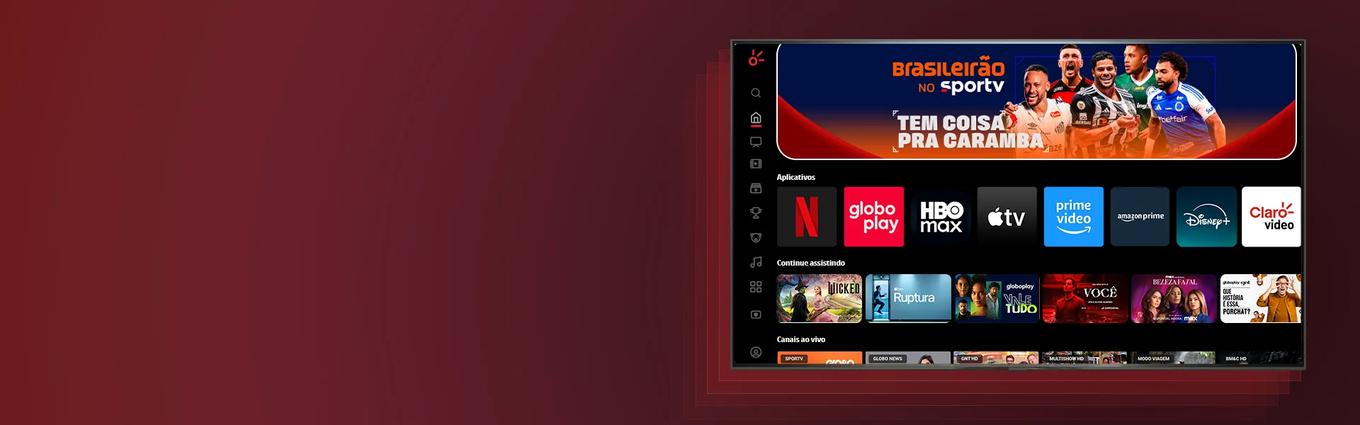 ****Nos planos Claro tv+ que incluem Apple TV, Netflix, HBO Max, Diney+, Amazon Prime e Globoplay, é necessário ativar cada um dos serviços individualmente.