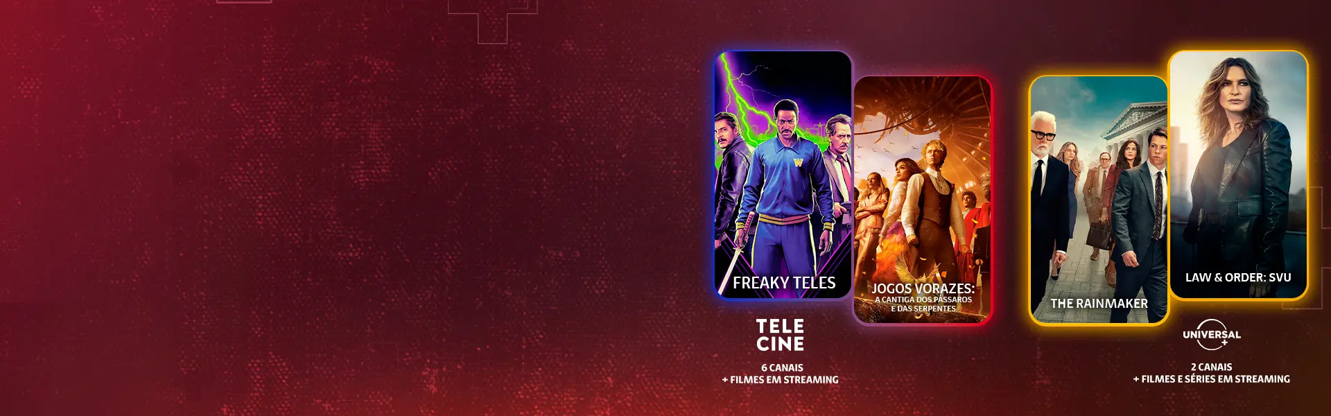 Mais do que um streaming, uma experiência completa com uma ampla variedade de conteúdos para todos os gostos. Incluindo dois canais lineares no pacote, o serviço oferece filmes e séries em um vasto catálogo para assistir no seu tempo, local e dispositivo preferidos. Comece a aproveitar agora mesmo o melhor do entretenimento do Universal+!