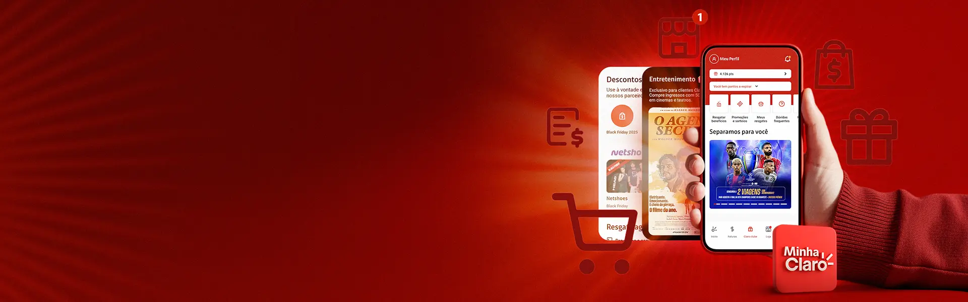 Acesse sua fatura, suporte técnico, ofertas exclusivas, resgates e descontos do Claro clube e muito mais.
