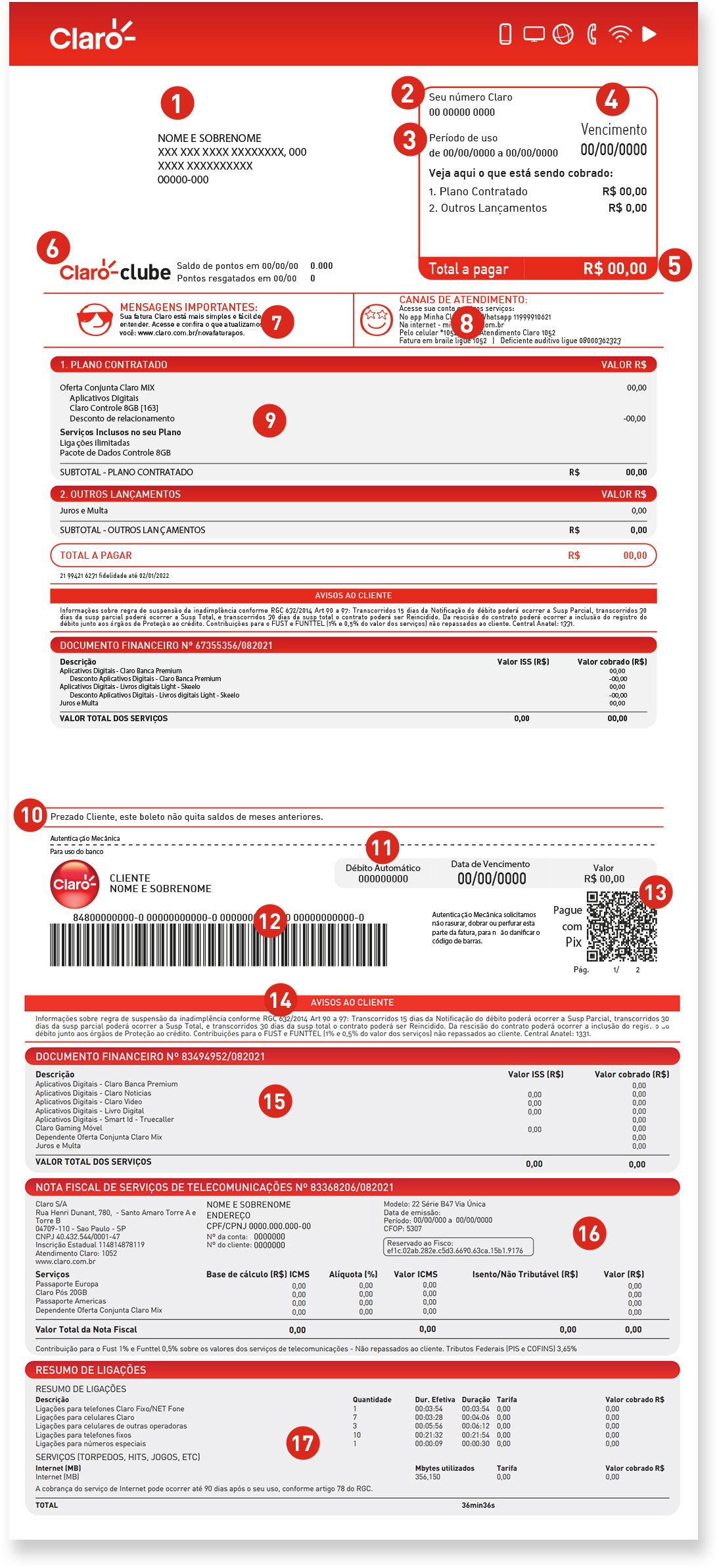 Sua pontuação do Claro clube, o programa de fidelidade da Claro, em que você acumula pontos todo mês e troca por produtos e serviços.