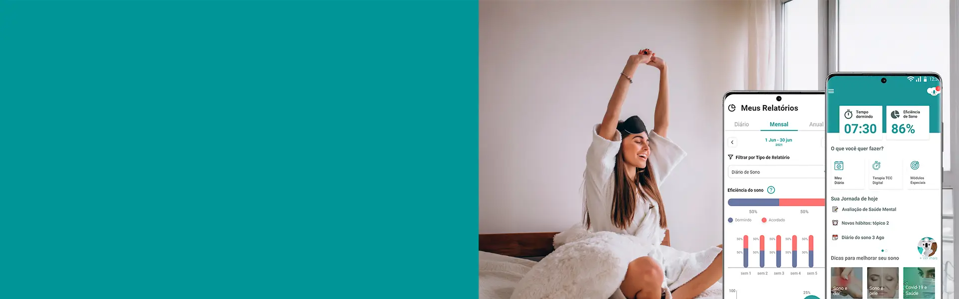 A plataforma de terapias digitais aprovada pela ANVISA que trata os motivos da sua insônia e te mostra técnicas validadas pela medicina, psicologia e mindfulness para pegar no sono mais rápido, por mais tempo (sem muitas interrupções durante a noite) e, claro, ter muito mais saúde - tudo isso na palma da mão e a qualquer momento.