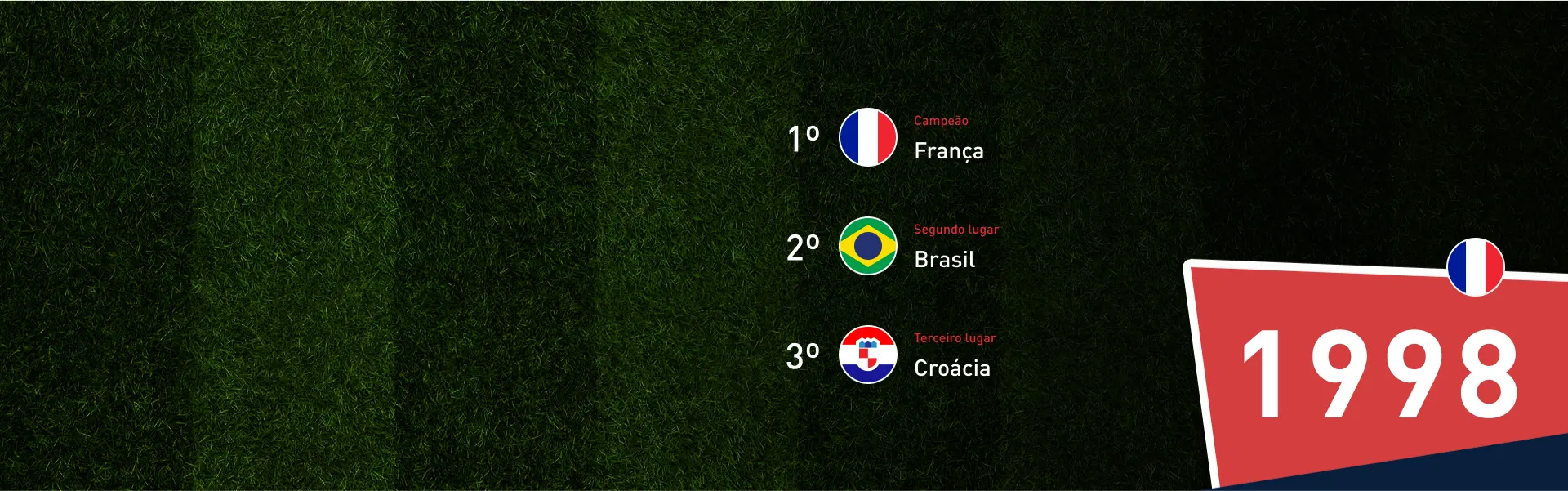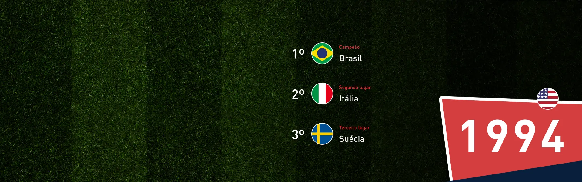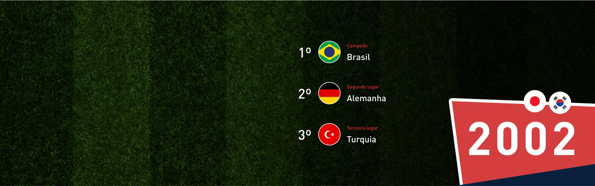 O Brasil é o país mais vezes campeão da Copa do Mundo da FIFA™ , com cinco conquistas (1958, 1962, 1970, 1994 e 2002). Em outras duas oportunidades, no entanto, o Brasil acabou com o vice-campeonato da Copa do Mundo: 1950 e 1998.